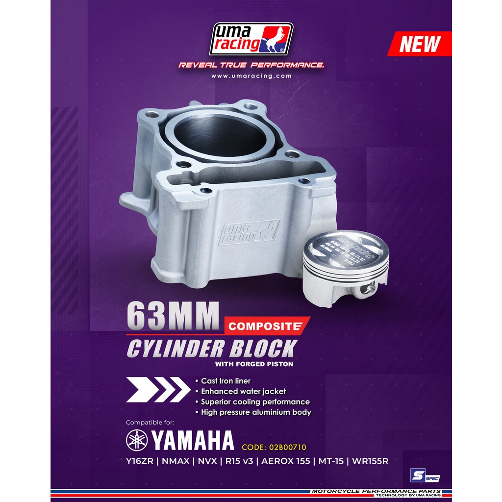 UMA Racing Composite Cylinder Block 63MM NMAX/AEROX/SNIPER150/SNIPER 155/R15 V3 (STEEL BORE)