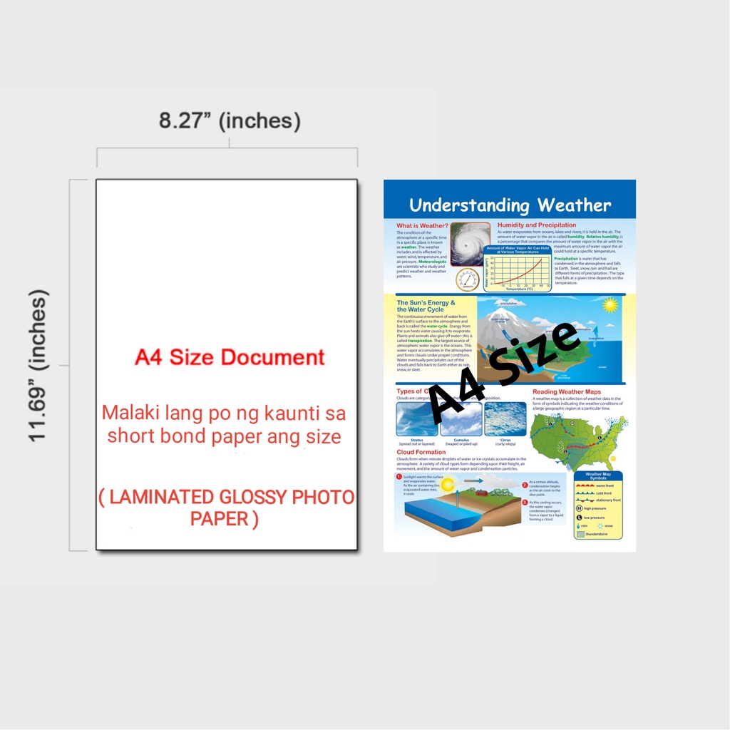 UNDERSTANDING WEATHER POSTERS CHARTS I ALL ABOUT WEATHER SCIENCE CHARTS A4 Size Laminated