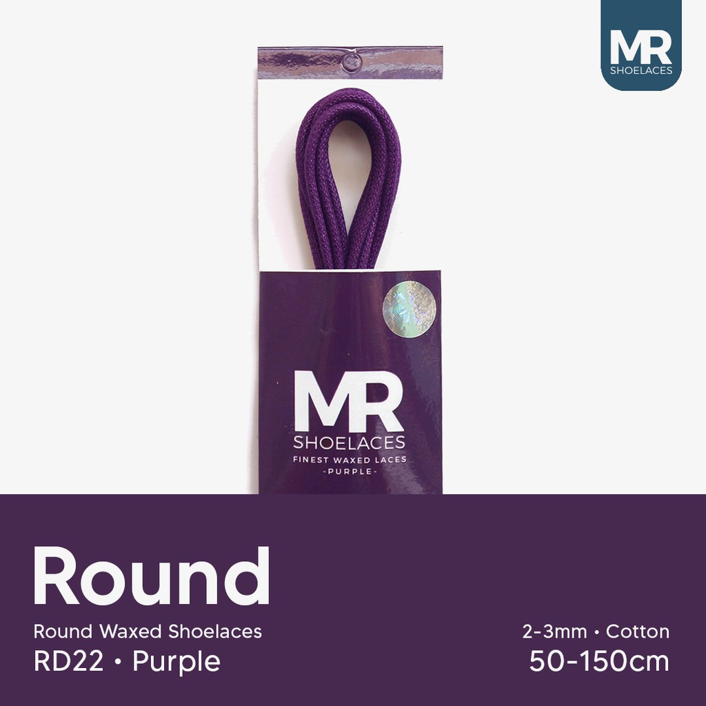 UNGU LILIN MR Shoelaces RD22 Purple (Purple) Waxed Shoelaces 2-3mm Round 50cm 60cm 70cm 80cm 90cm 100cm 120cm 150cm (Waxed Laces) - Premium Shoelace