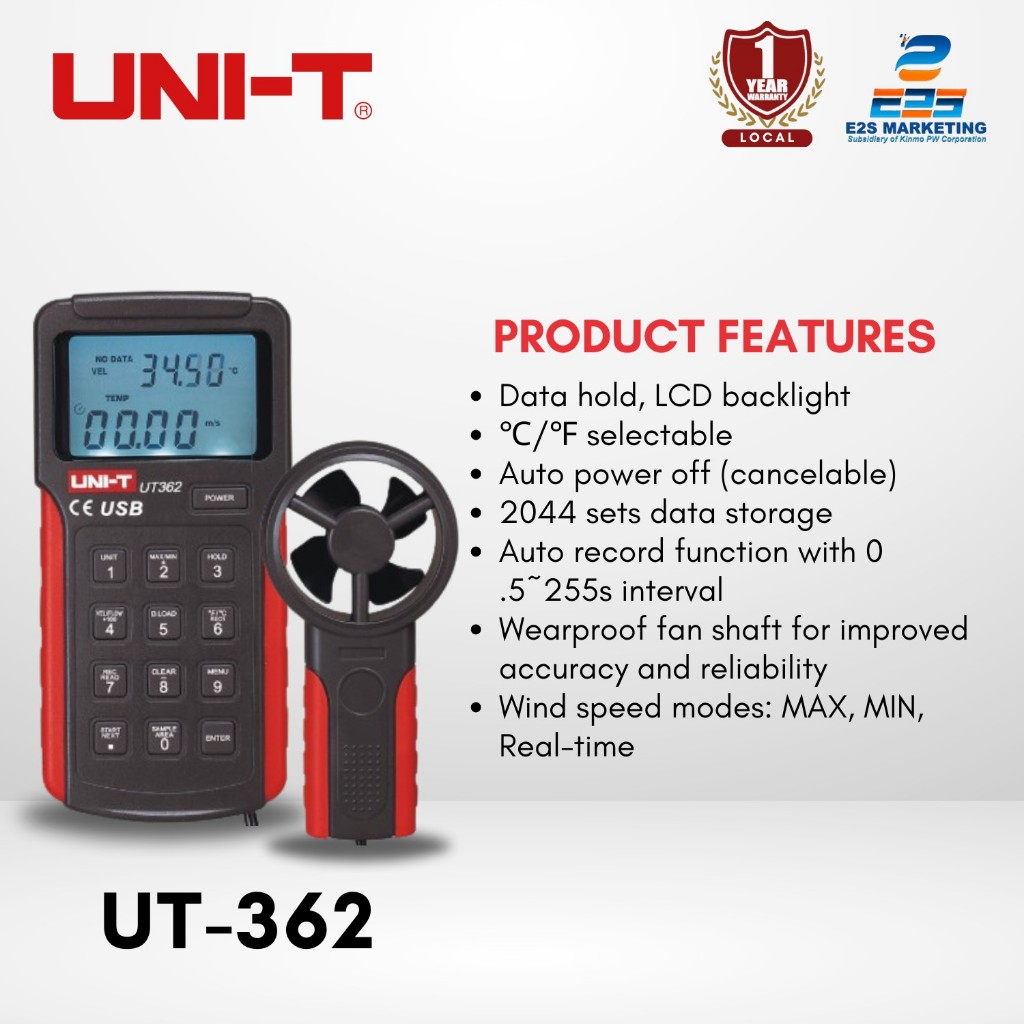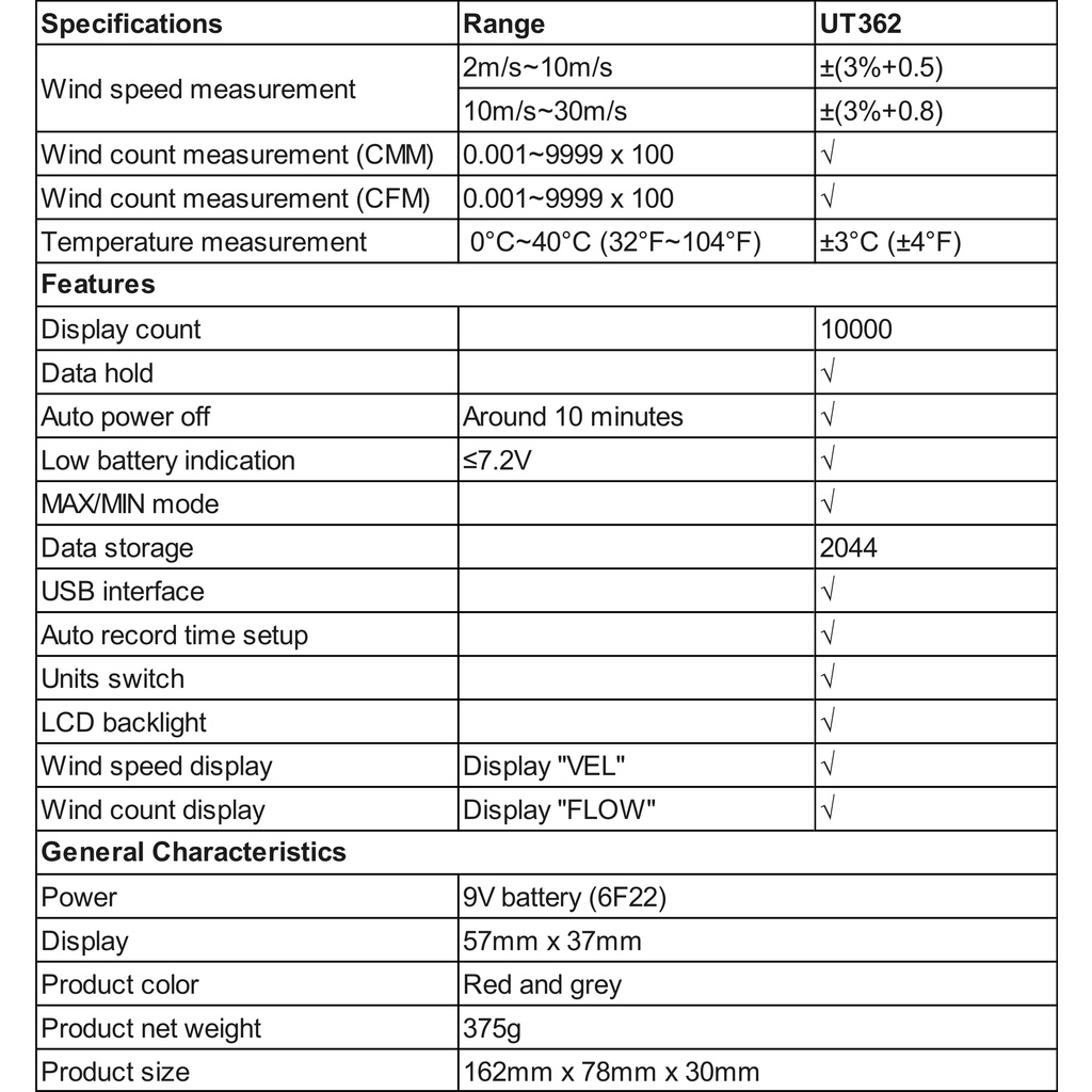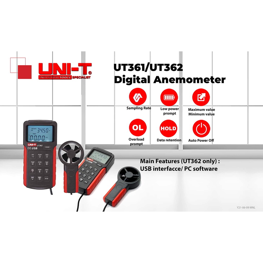 UNI-T Anemoscope UT-362 Anemometer Data hold / Auto poweroff / Low battery indication / MAX/MIN mode