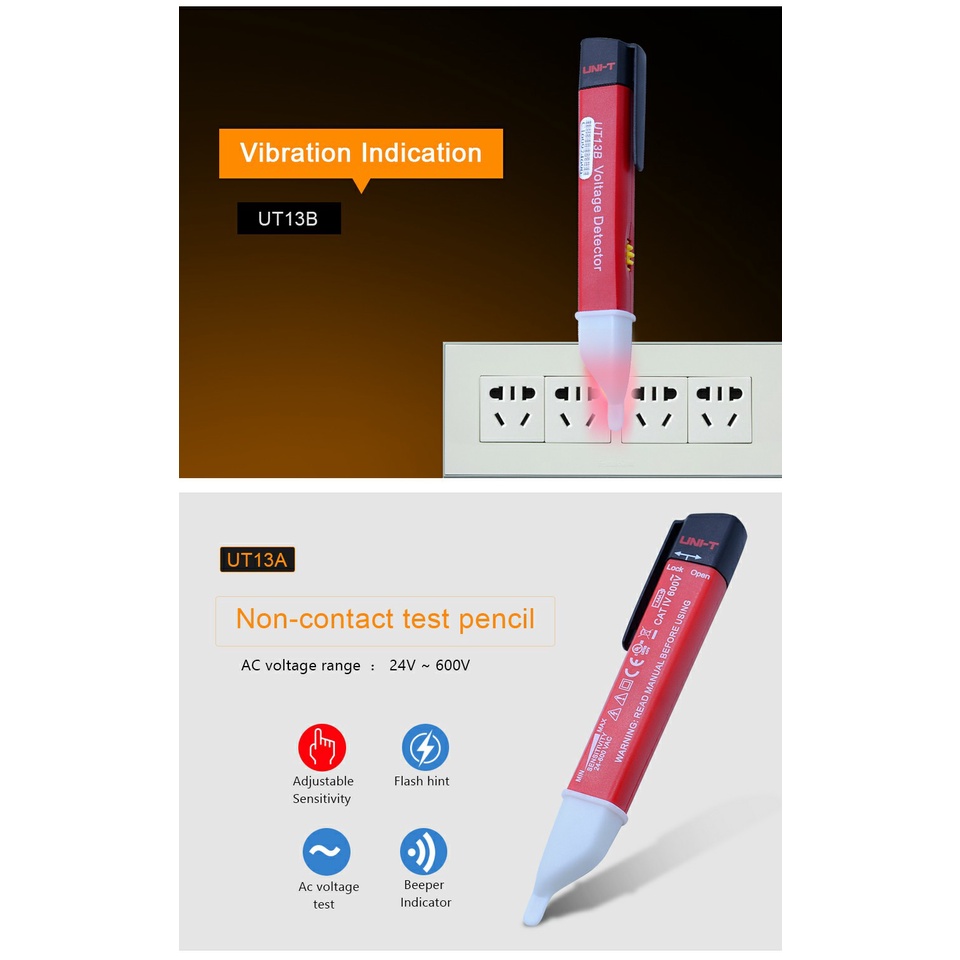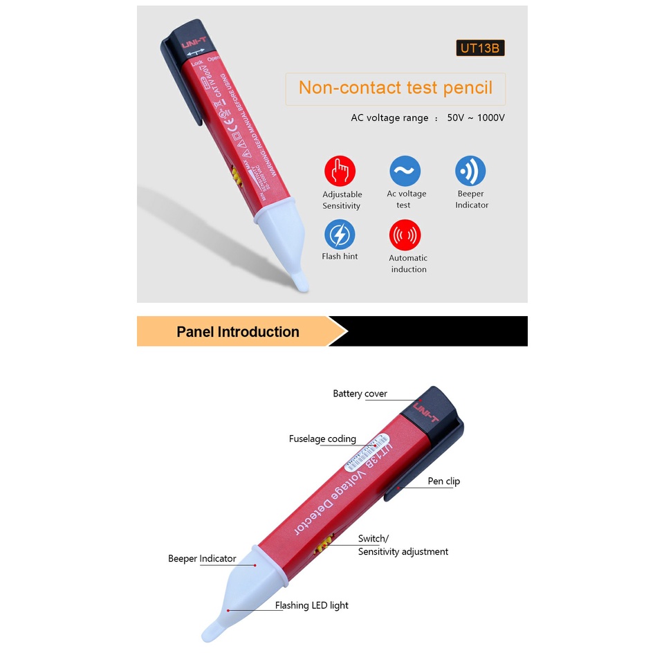 UNI-T UT13B AC Voltage Detectors Non-Contact 50V~100V Electric Sensor Tester Pen Meter