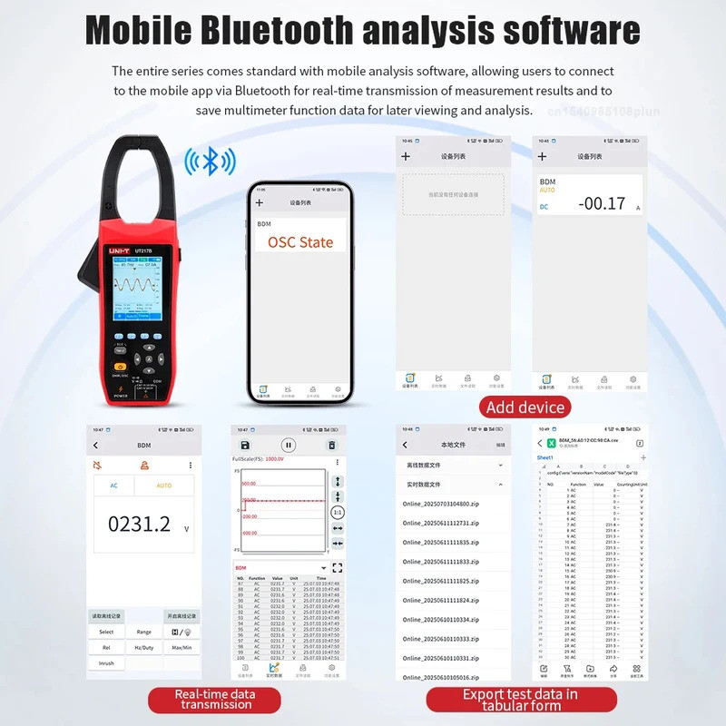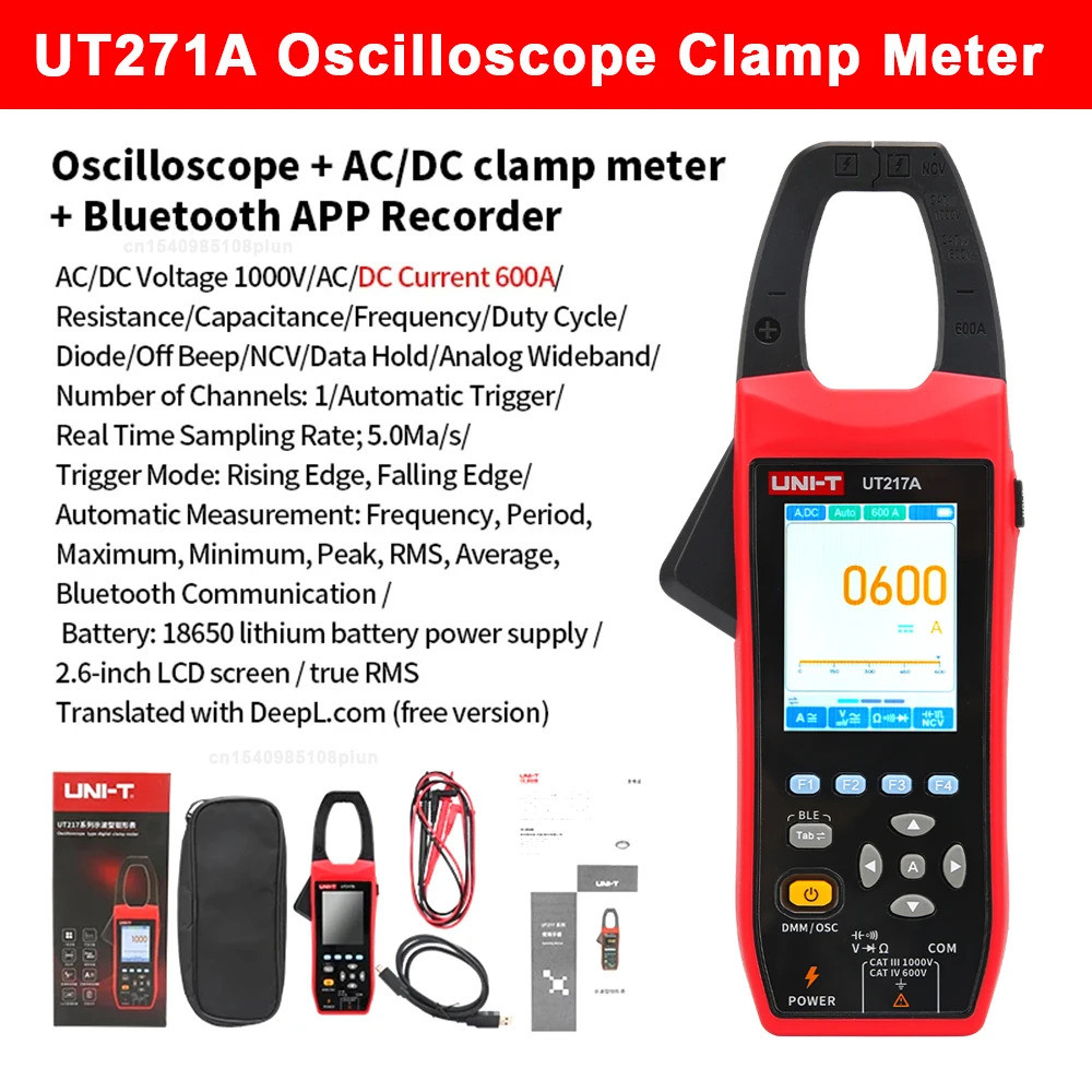 UNI-T UT217A UT217B Oscilloscope Clamp Meter with Bluetooth Current Voltage Waveform Amplitude Frequency Oscilloscope Multimeter