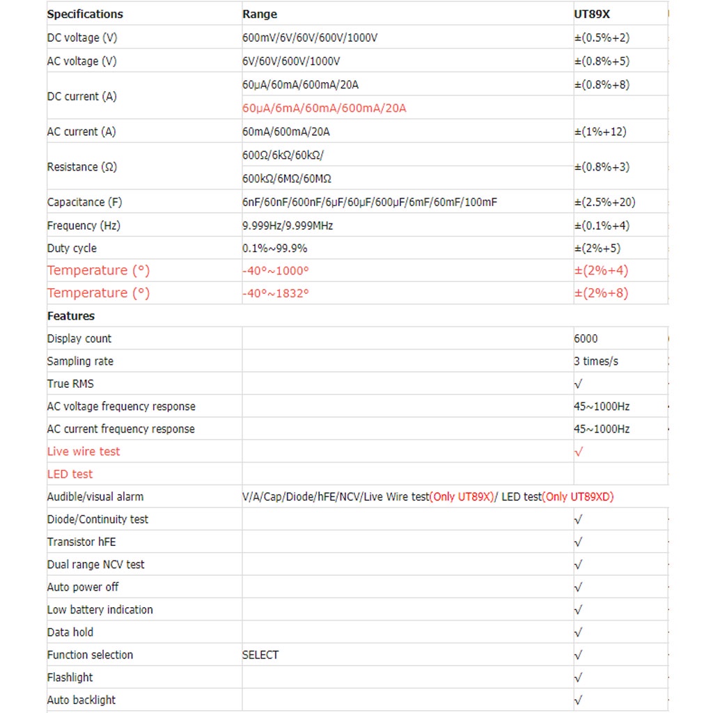 UNI-T UT89X Digital tester Multimeter multi tester High Accuracy Handheld Mini Universal Meter LED