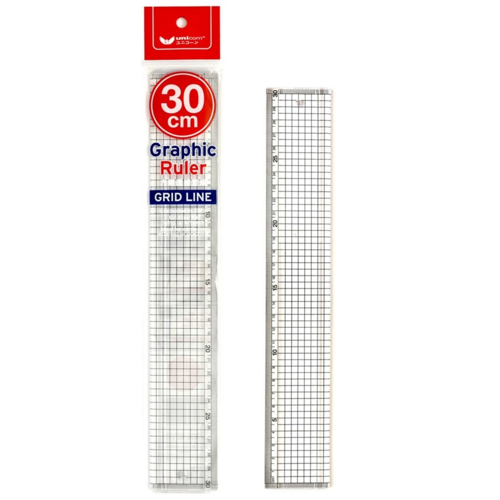 UNICORN 30cm Transparent Hard Body Graphic Ruler / Grid Line Graphic Ruler