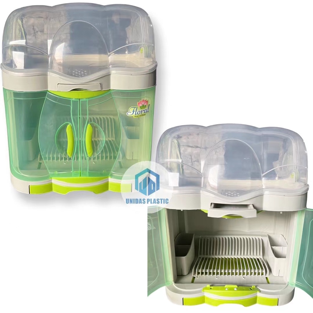 UNIDAS dish cabinet Floral Dish Drainer with 1 Drawer dish rack with cover dish utensil storage
