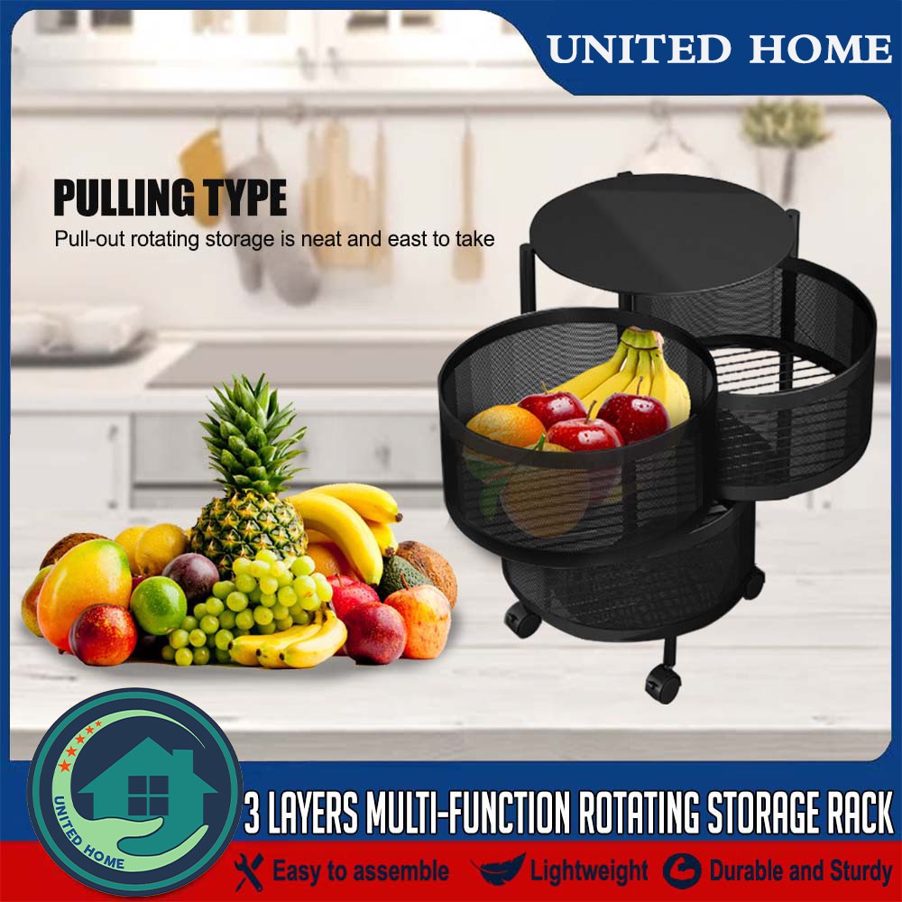 UNITED HOME Multi-use Rotating Storage Rack Fruit Vegetable Basket Kitchen Shelf (3/4/5 Layers)