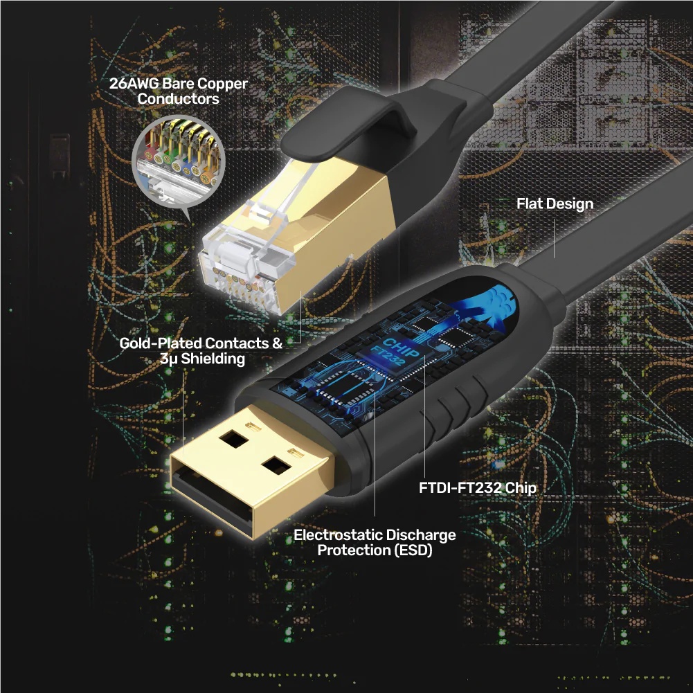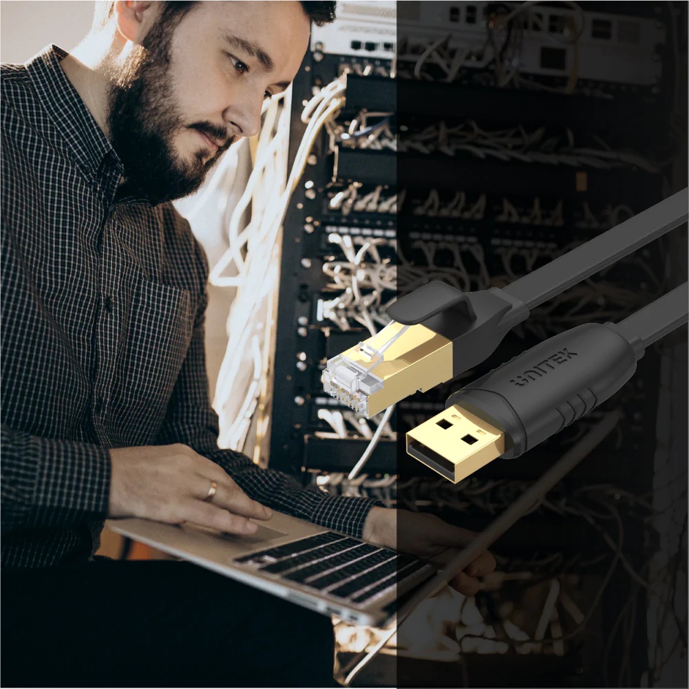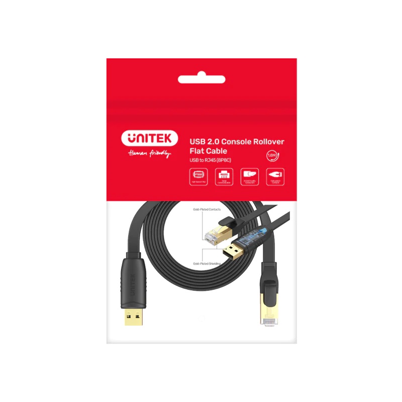 UNITEK Y-SP02001B 1.8M USB 2.0 To Rj45 Console Rollover Flat Cable