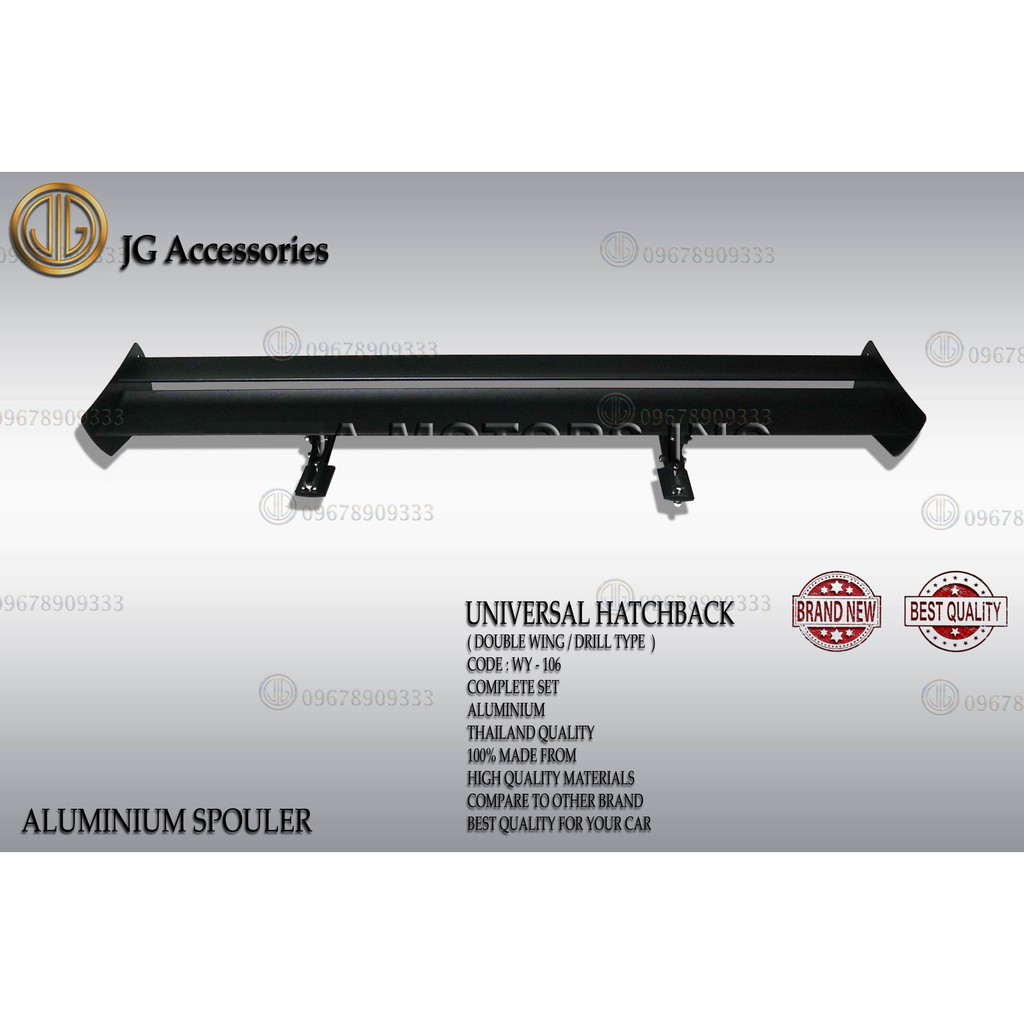 UNIVERSAL DOUBLE WING ALUMINIUM SPOILER FOR HATCHBACK DRILL TYPE/REAR SPOILER THAILAND MATTE BLACK