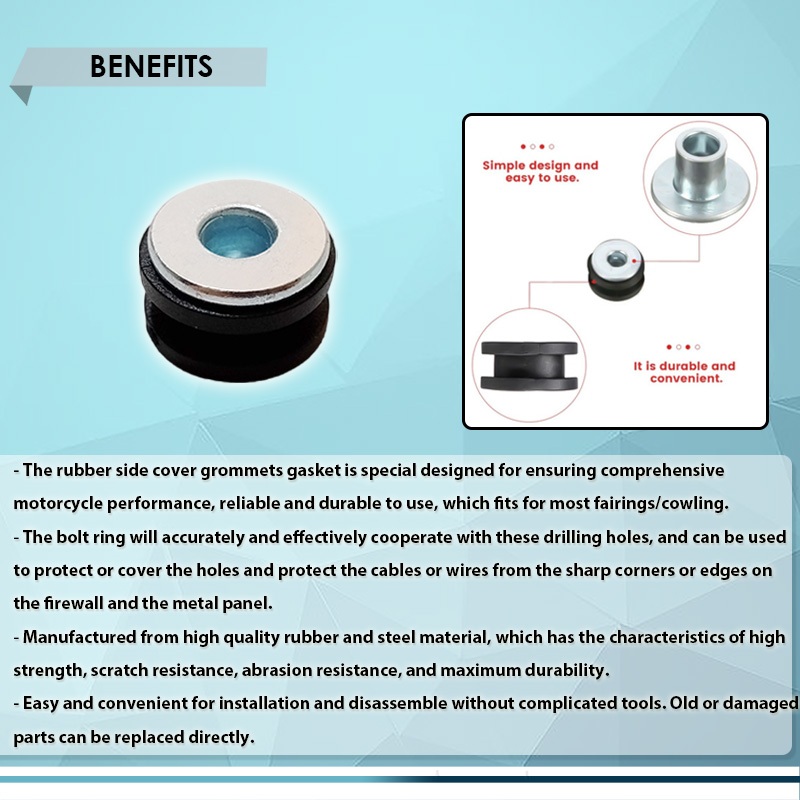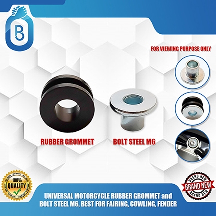 UNIVERSAL MOTORCYCLE RUBBER GROMMET and BOLT STEEL M6, BEST FOR FAIRING, COWLING, FENDER