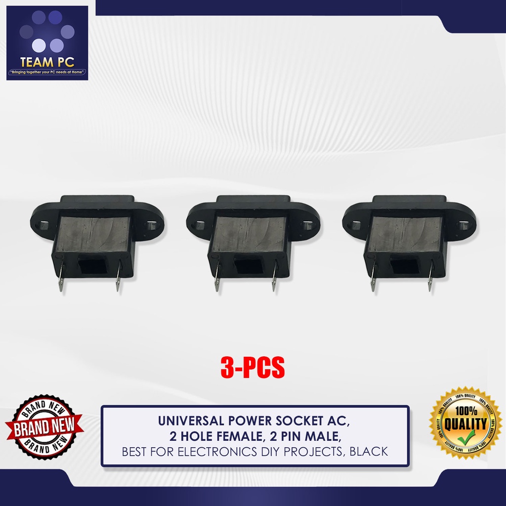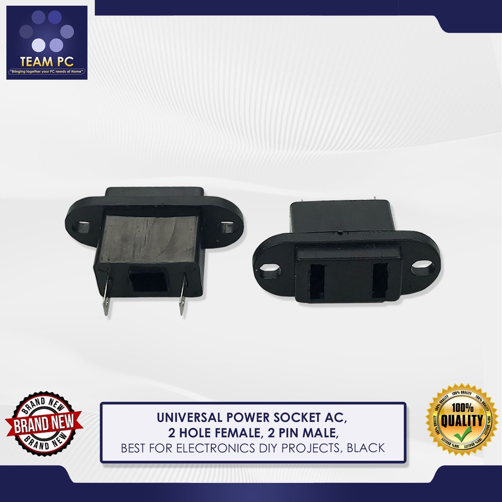 UNIVERSAL POWER SOCKET AC, 2 HOLE FEMALE, 2 PIN MALE, BEST FOR ELECTRONICS DIY PROJECTS, BLACK