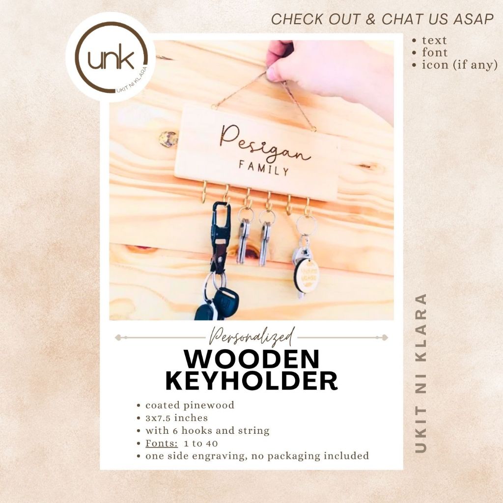 UNK - Wooden Keyholder - Personalized | Ukit ni Klara Laser Engrave key holder organizer keys hooks