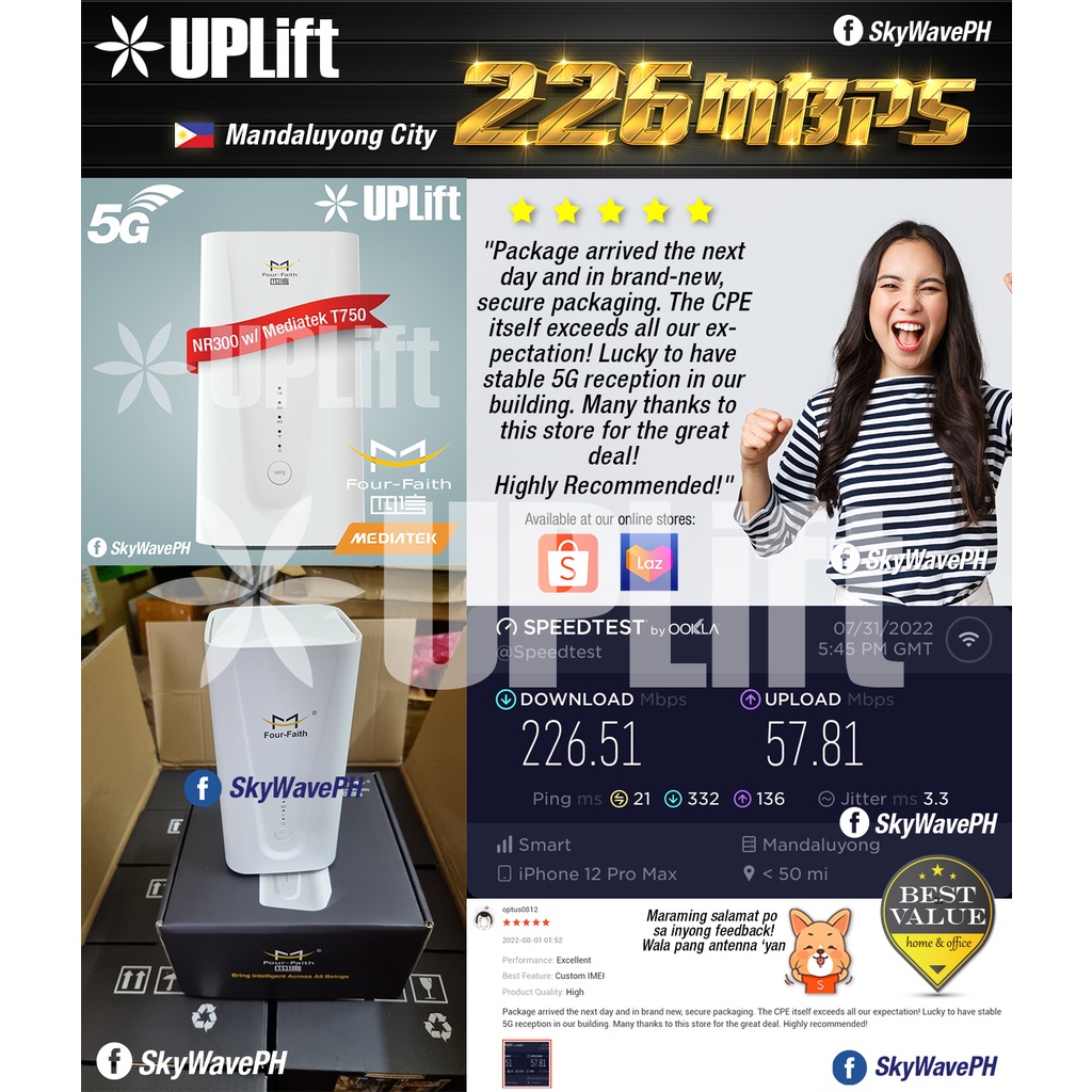 UPLift Four Faith F-NR300 5G 5G+ CPE Internet Modem SIM-Based for All Networks (3 Versions)