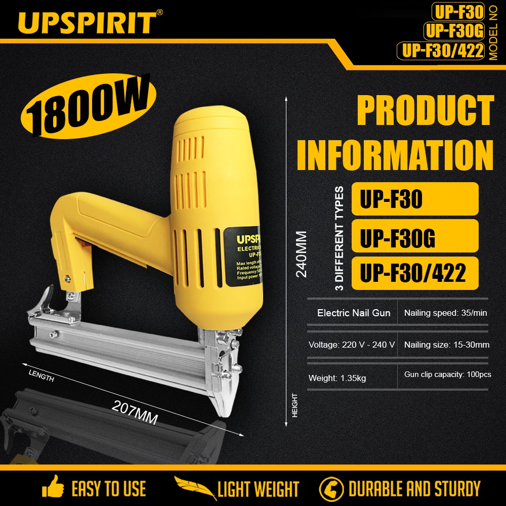UPSPIRIT(6Months Warranty)1800W Electric Nail Gun Woodworking Furniture Straight/U-Shaped Nailer Gun