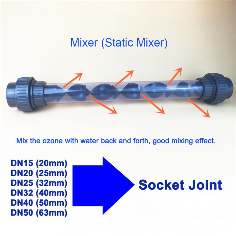 UPVC 20-63mm High Efficiency Ozone Mixing Equipment Inline Ozone Static Mixer