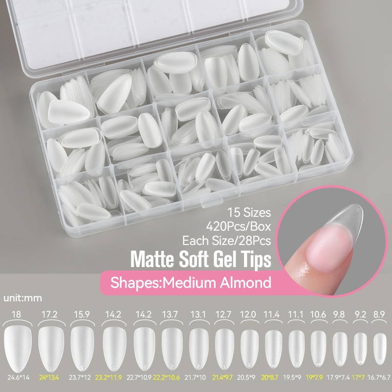 UR SUGAR Short Almond Nail Tips Soft Gel Nail Tips Full Cover False Nail Tips For Acrylic Nails Manicure Salon Home Press On