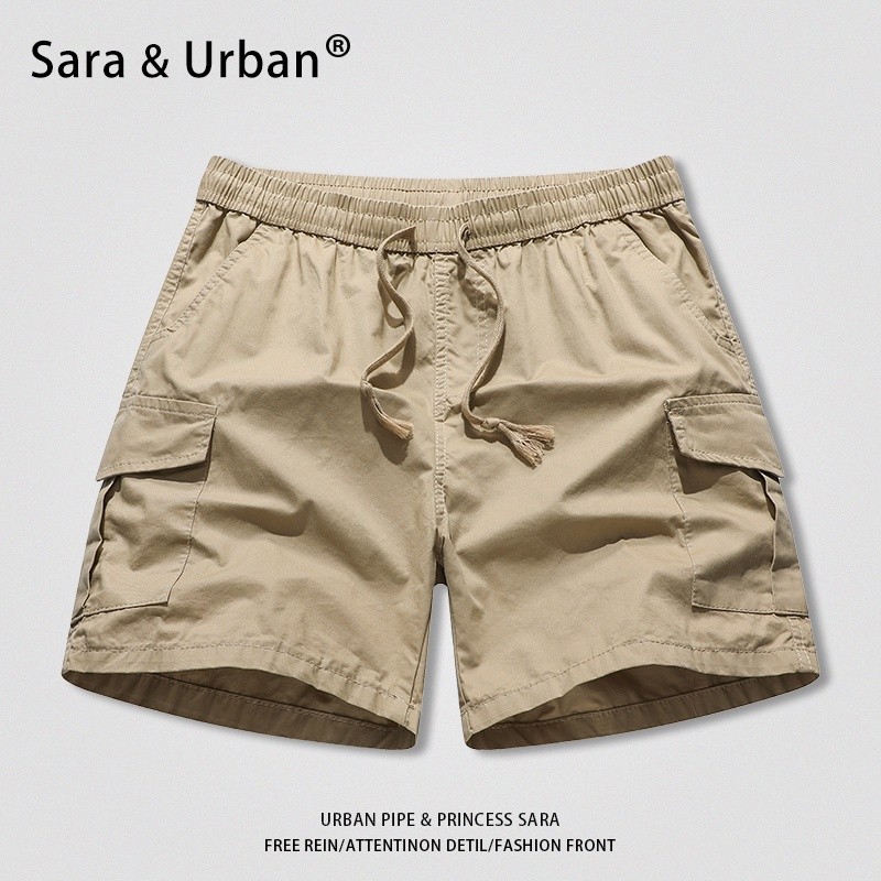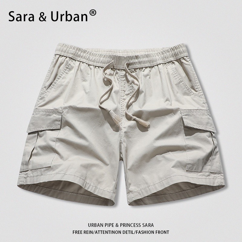 URBAN PIPE 4 Pocket Cargo Shorts For Men Knee-Above Buttons Drawsting Short Mens Fashion 2260