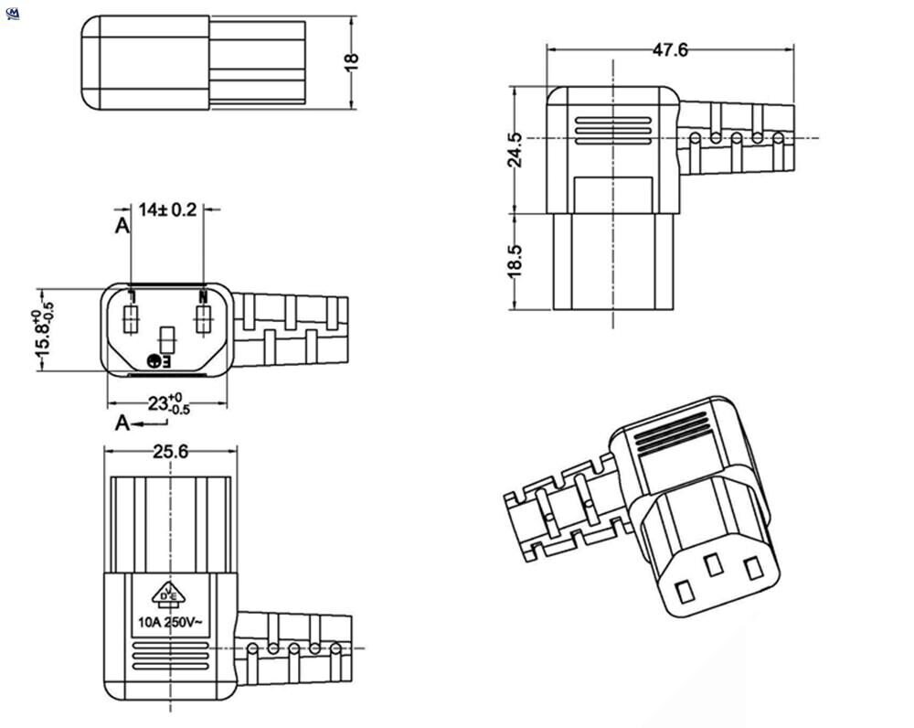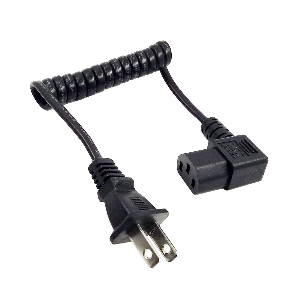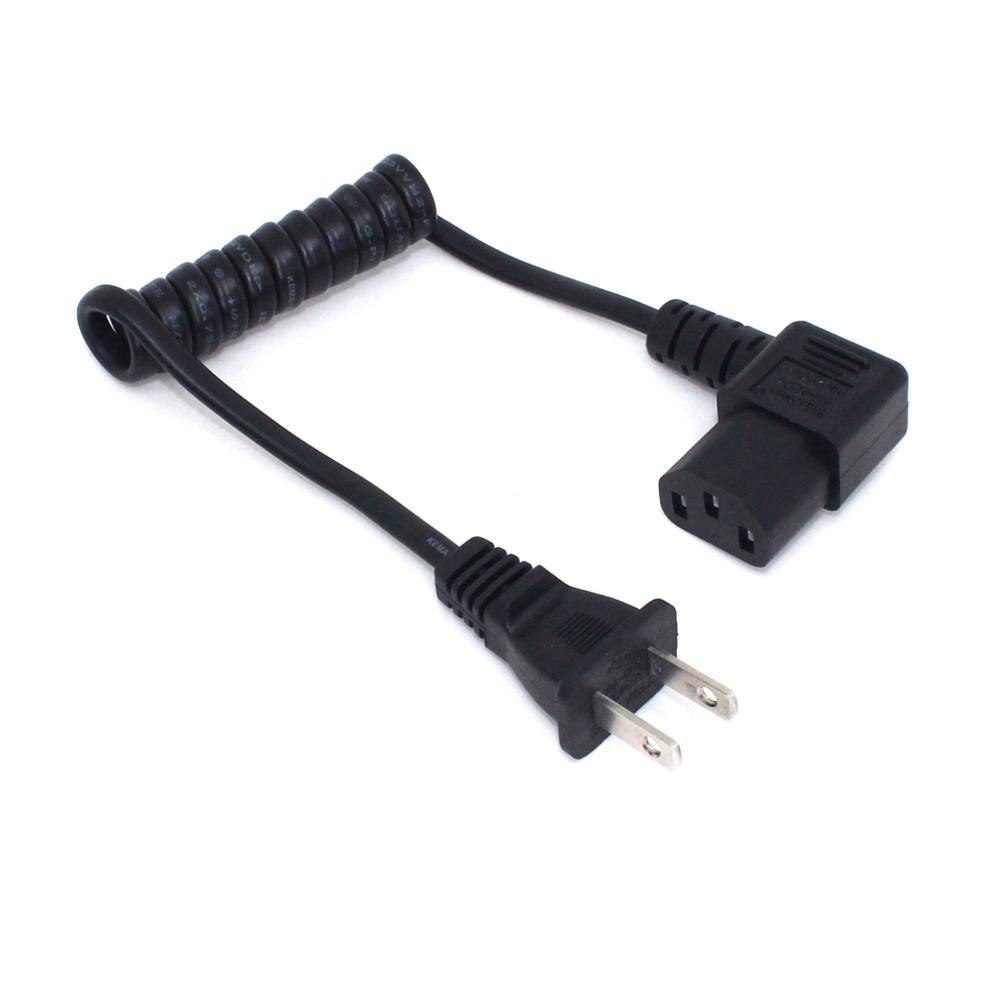 US 2 Prong Retractable Power Cord, US NEMA 1-15P To Right Angeled IEC60320 C13 Ultra Short Extension Lead Cable 10A