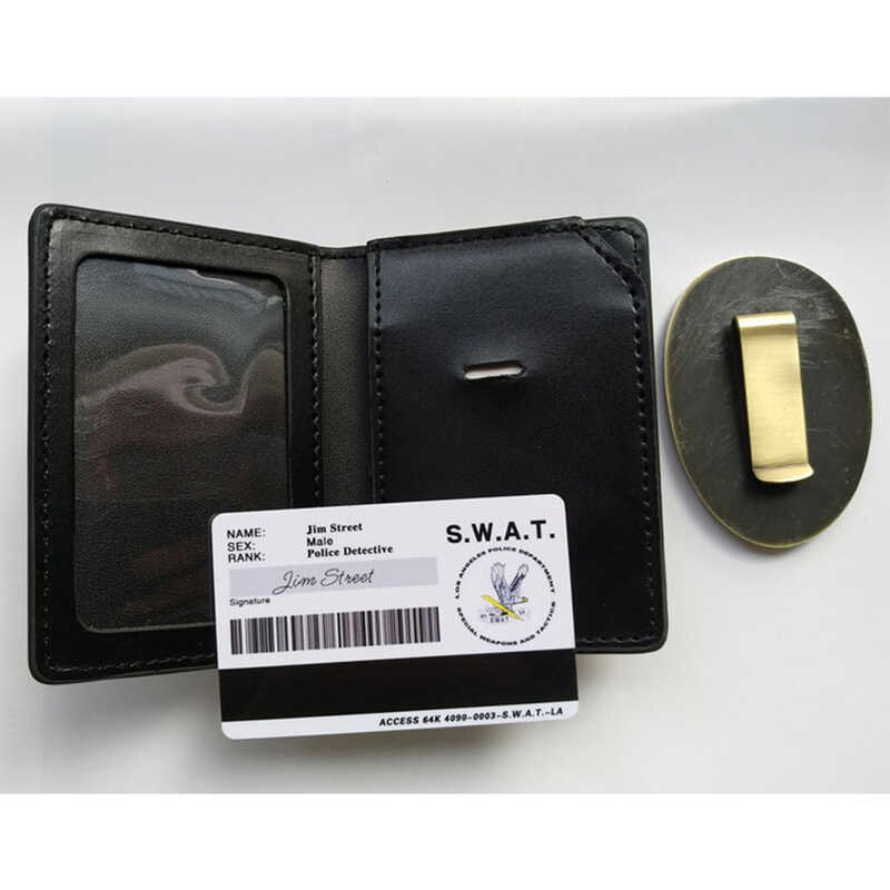 US Black Leather Police Officer Wallets Driving License Bag Badge ID Card Holder