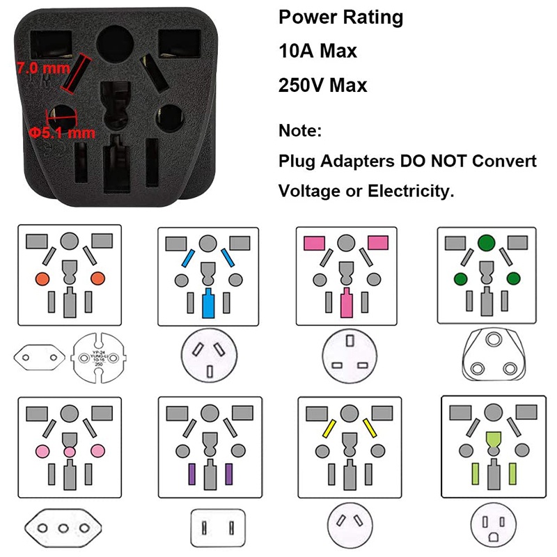 US Plug Adapter EU/UK/AU to USA (Type B), Charger Converter Black