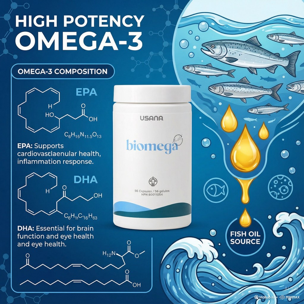USANA Biomega Fish Oil Supplement Omega-3 EPA DHA Vitamin D 56 Gelcaps For Heart Brain Joint Health