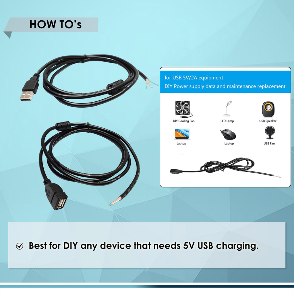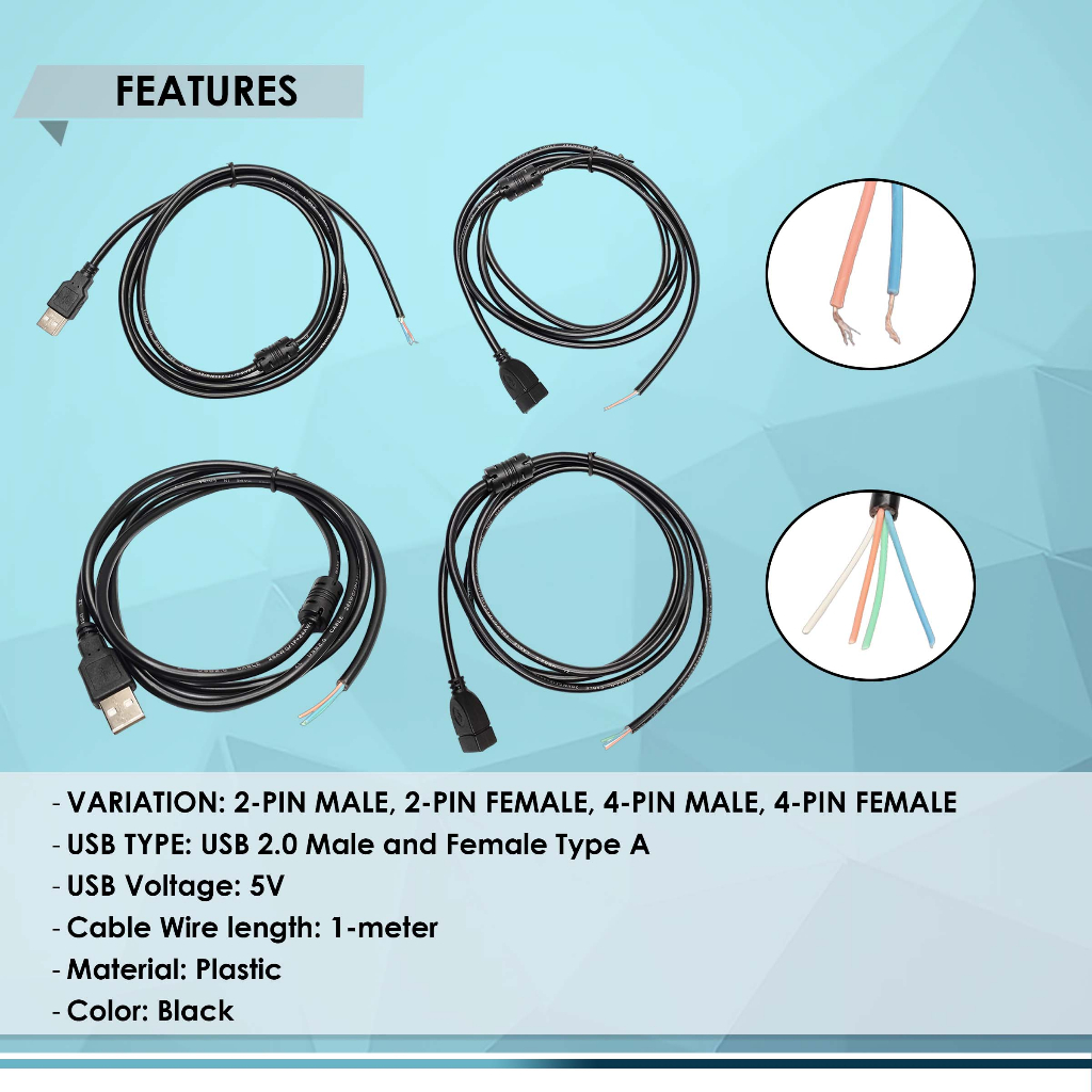 USB 2.0 MALE FEMALE 5V 2-4 PIN EXTENSION BARE WIRE OPEN END CONNECTOR, BEST FOR DIY CORD REPLACEMENT
