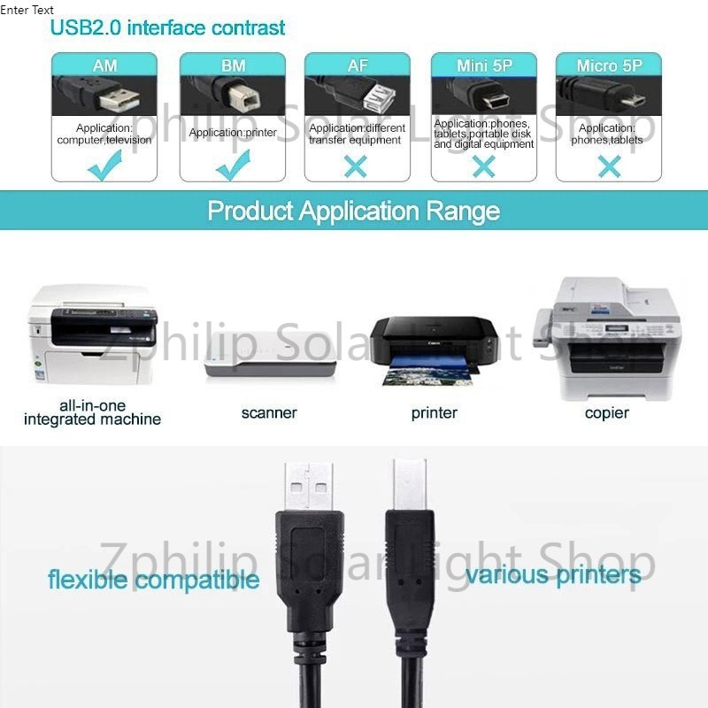USB 2.0 Printer Cable High Quality & High Speed USB Cable Plug Scanner 1.5M/3M/5M/10M (Black Blue)