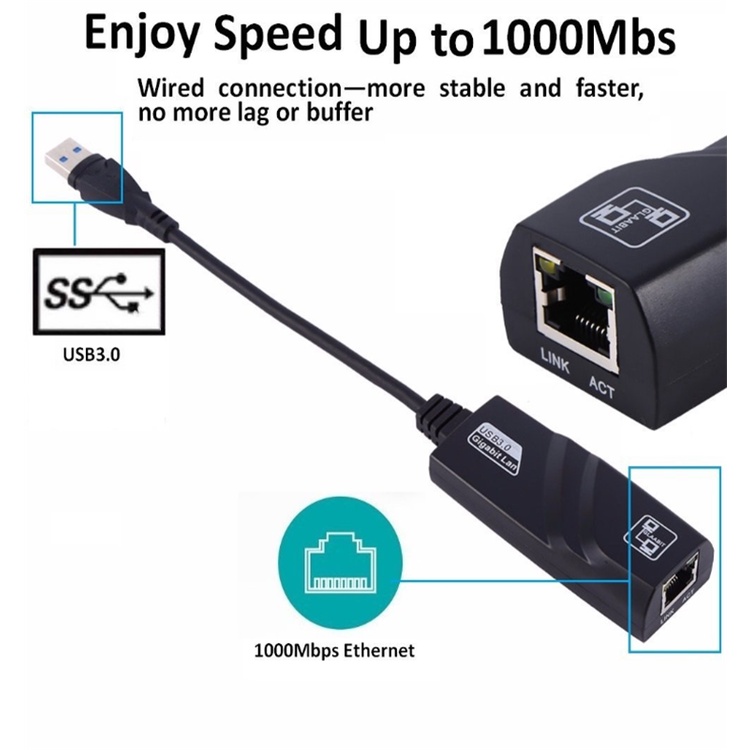 USB 2.0 to LAN 10/100/1000 Mbps Gigabit LAN Network Ethernet Adapter (Plug and Play)