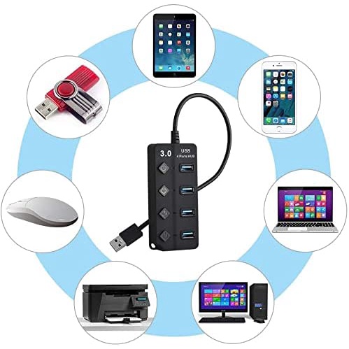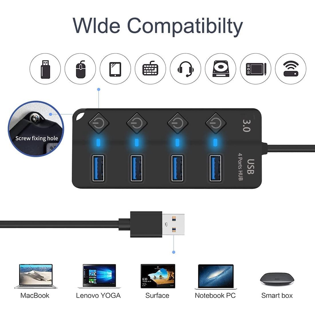 USB 3.0 Hub Ultra-thin USB splitter 4 port usb extension with Individual On/Off Switche 1.2M Cable