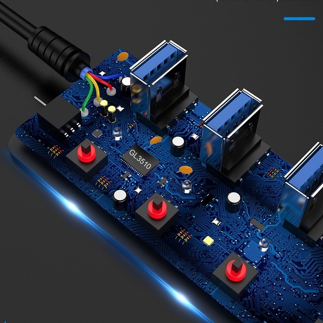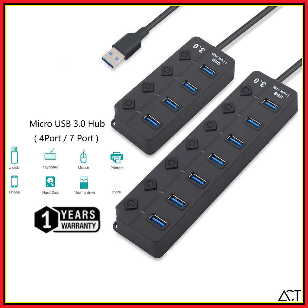 USB 3.0 SuperSpeed 4 Ports / 7 Ports Data Transfer USB Hub with LED Light Indicator - Black