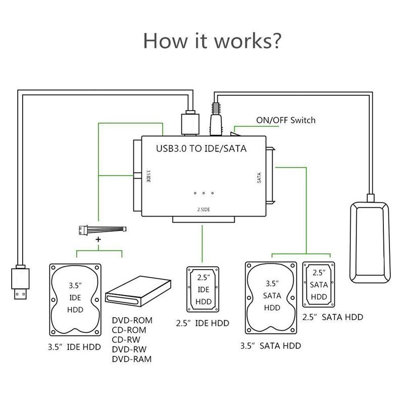 USB 3.0 to SATA IDE ATA Data Adapter 3 in 1 for PC Laptop 2.5" 3.5" HDD Hard Disk Driver With US Pow