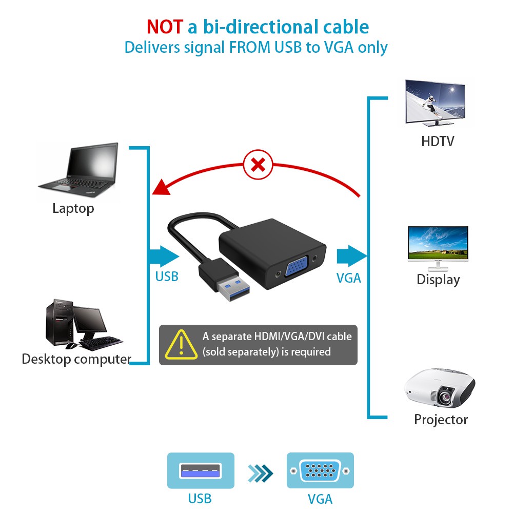 USB 3.0 to VGA Adapter USB to VGA Video Graphic Card Display External Cable