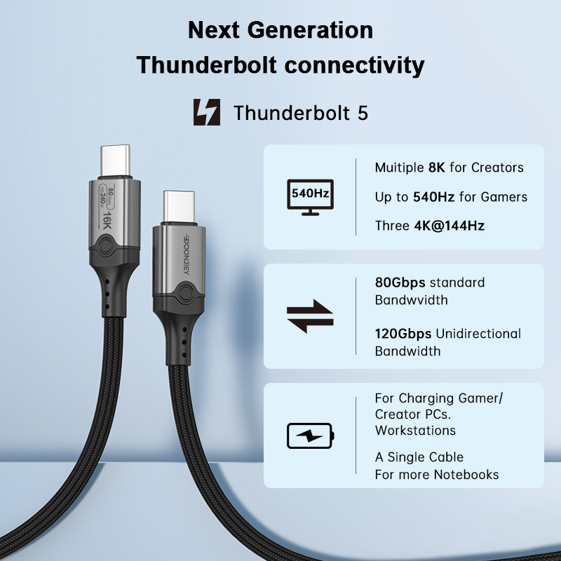USB 5 80Gbps Thunderbolt 5 Cable 16K@60hz USB C TO USB C Cable PD240W Type-c Charge Cable for Macbook Pro Laptop PS4 PS5