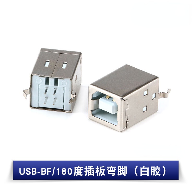 USB-BF/90 Degree 180 Plug Board Curved Pin B Female Socket USB-B Type Interface White Glue USB Connector
