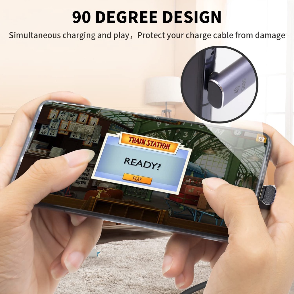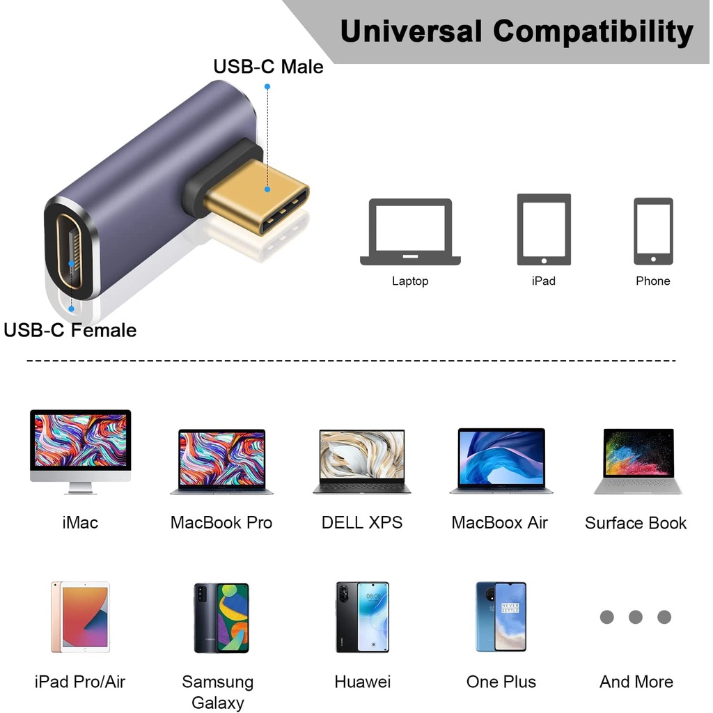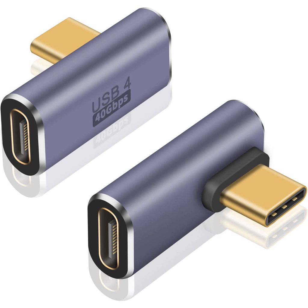USB C 90 Degree Adapter 100W, 40Gbps USB C Adapter, 2Pack Up Down USB C 90 Degree Adapter PD Type C Male to Female Extender 8k@60Hz Video for Thunderbolt 4/3, USB4, HUB