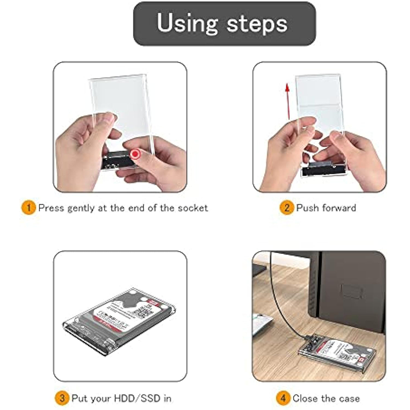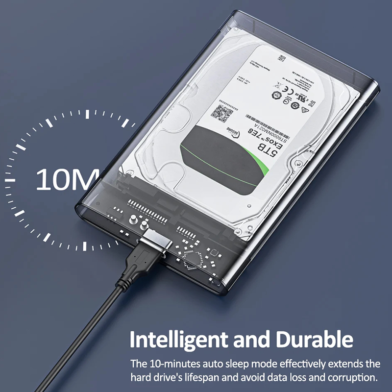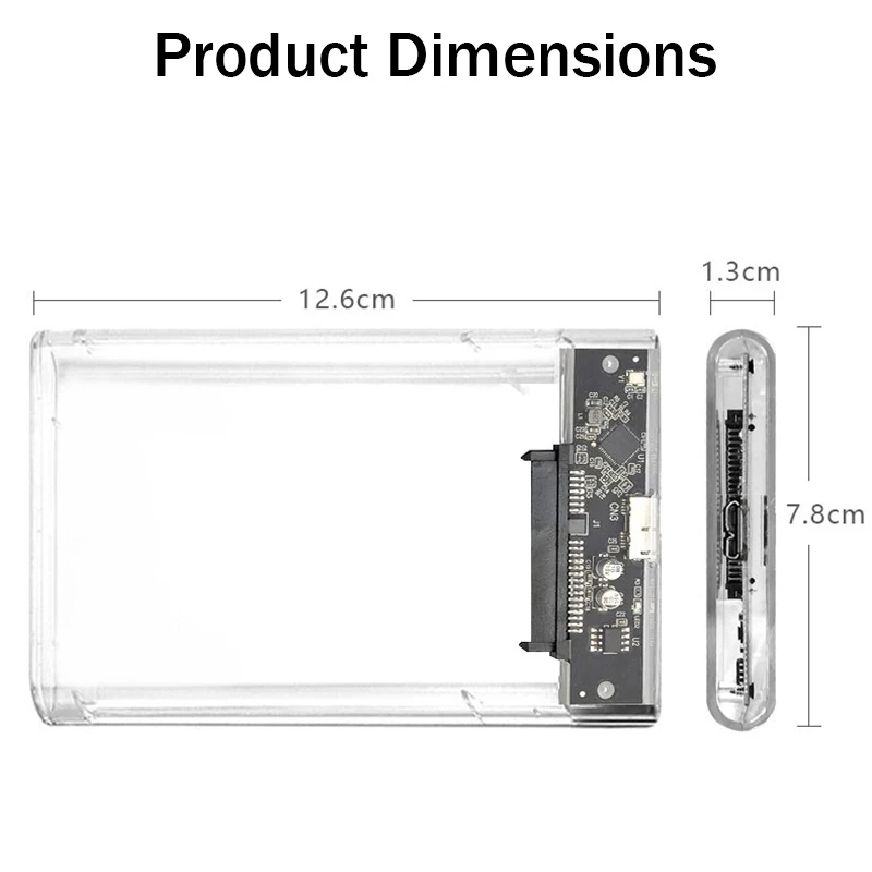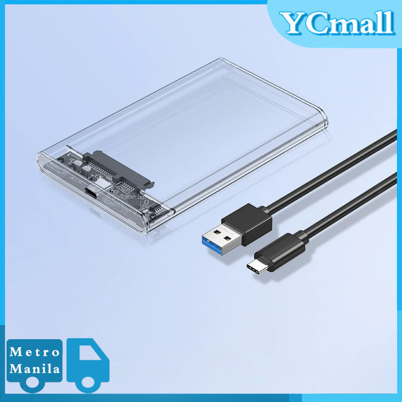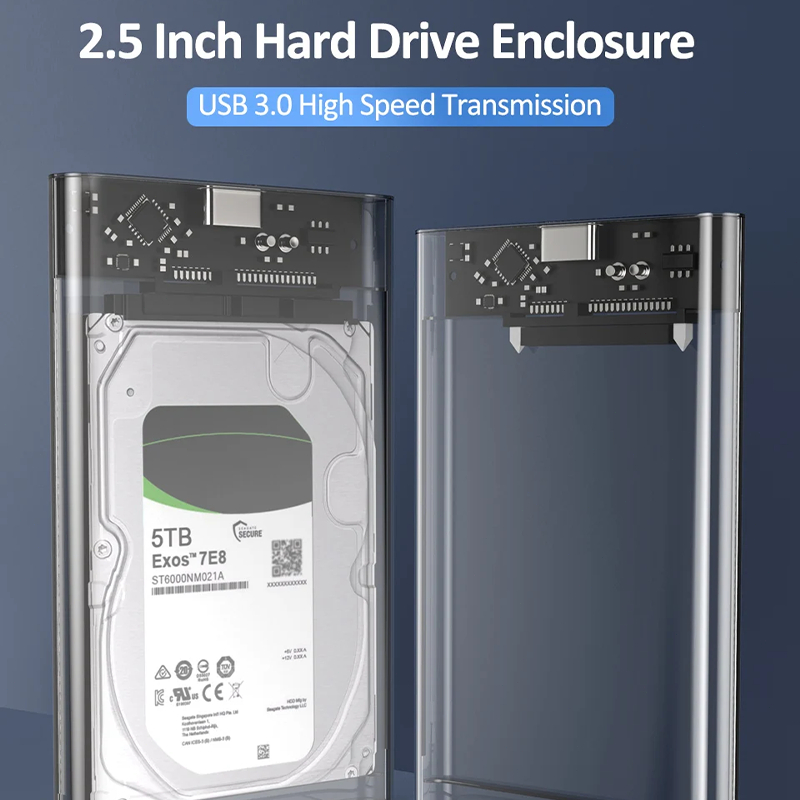 USB C Hard Drive Case External 2.5'' Enclosure Transparent Clear SSD Enclosure External Case