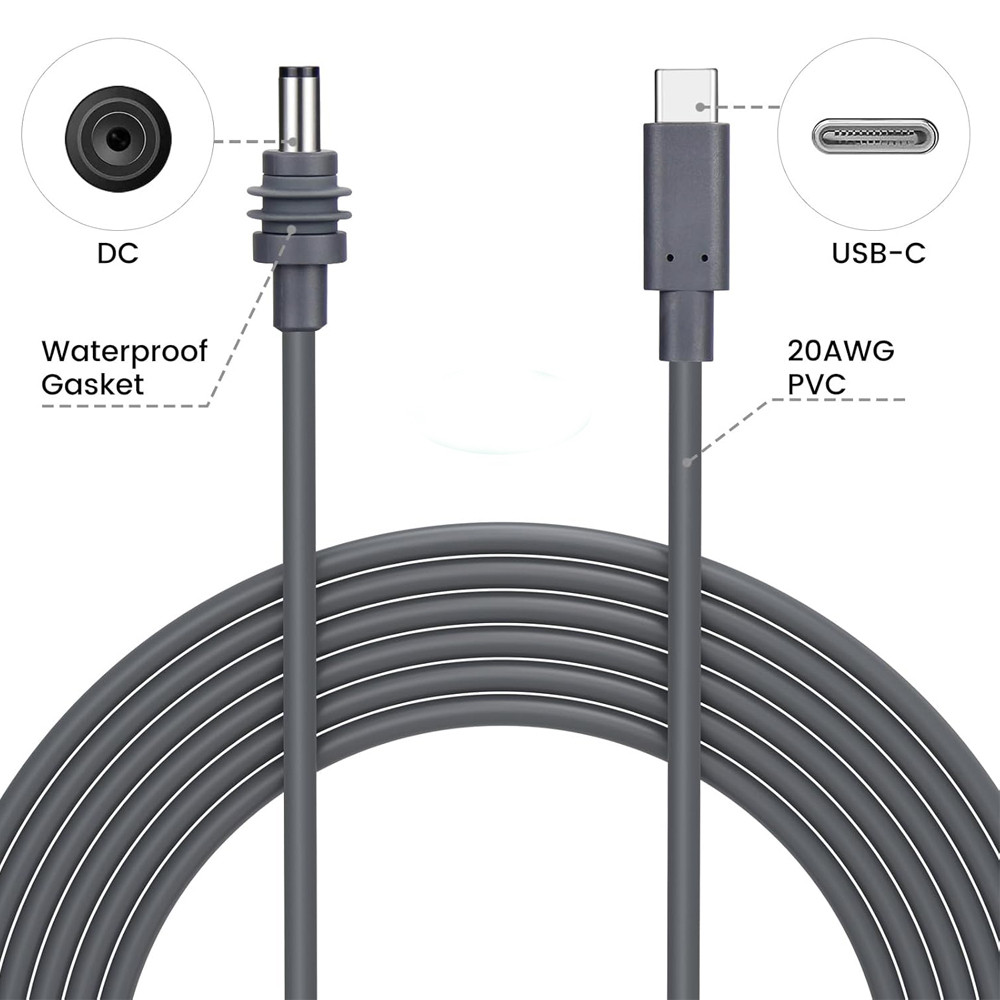 USB C to DC Power Cable for Starlink Mini, PD 100W Type C Fast Charging Cord with Outdoor Waterproof DC Barrel