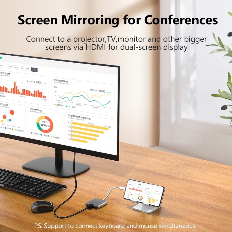 USB C to HDMI Adapter 3 in 1 Type-C OTG Hub Type C Adapter to HDMI + USB PD Hub Converter Adapter