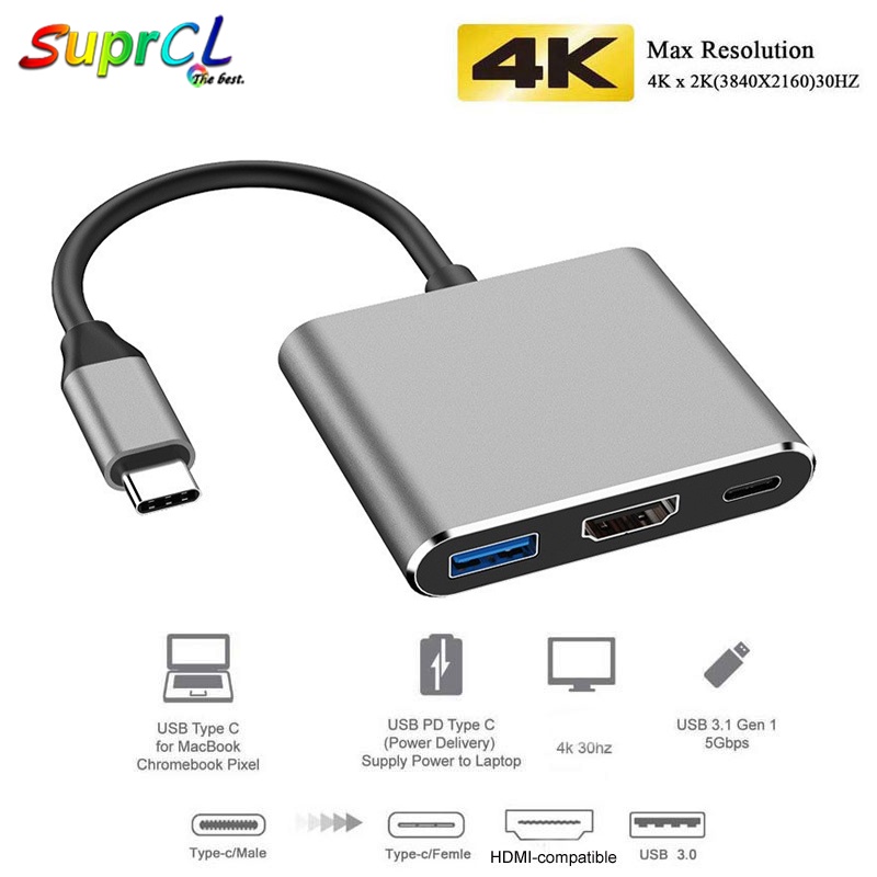 USB C to HDMI Adapter, Type c OTG 3 in 1 Hub, 4k HDMI & PD Fast Charging USB C To HDMI USB Hub Type C Female Converter