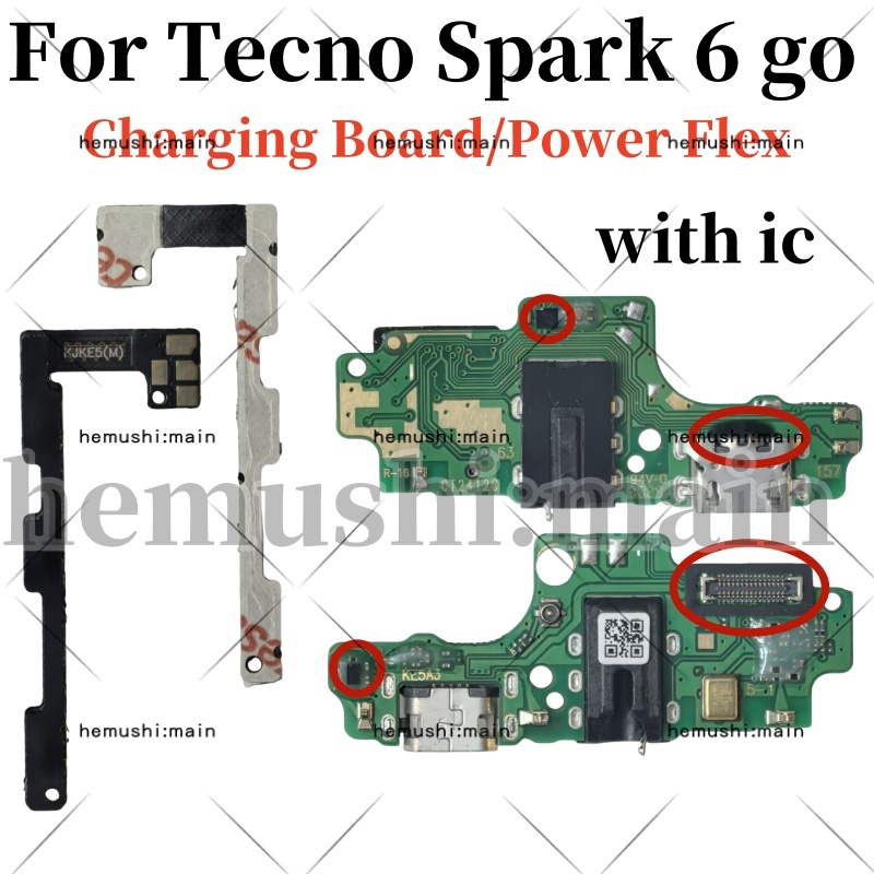 USB Charging Board For Tecno Spark 6 go KE5 USB Charger Dock Board USB Jack Flex Cable Connector Parts Power Flex button