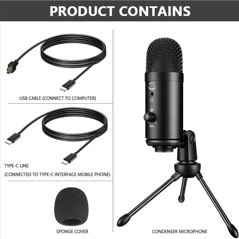 USB Condenser Microphone for PC Recording Vlogging Videoke Studio Mic Condenser Microphone Full Set
