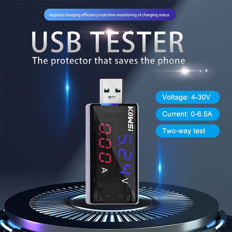 USB Current Voltage Tester 6.5A 4-30V Current Voltage Charging Detector Tester Digital Voltmeter Power Bank Charger Indicator