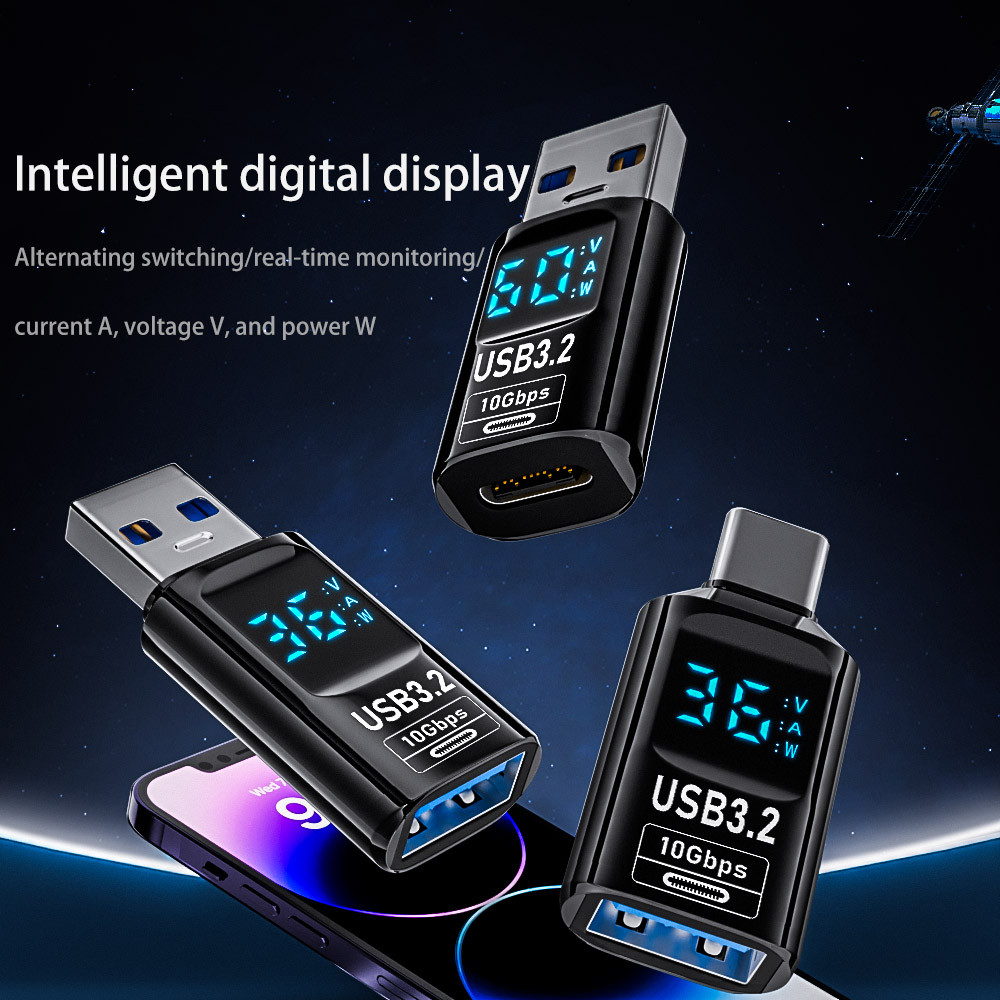 USB Digital Display Adapter USB to Type-C OTG Converter 10Gbps Data Transfer 36W 60W Charge USB C to USB Adapter USB3.2 LED Display