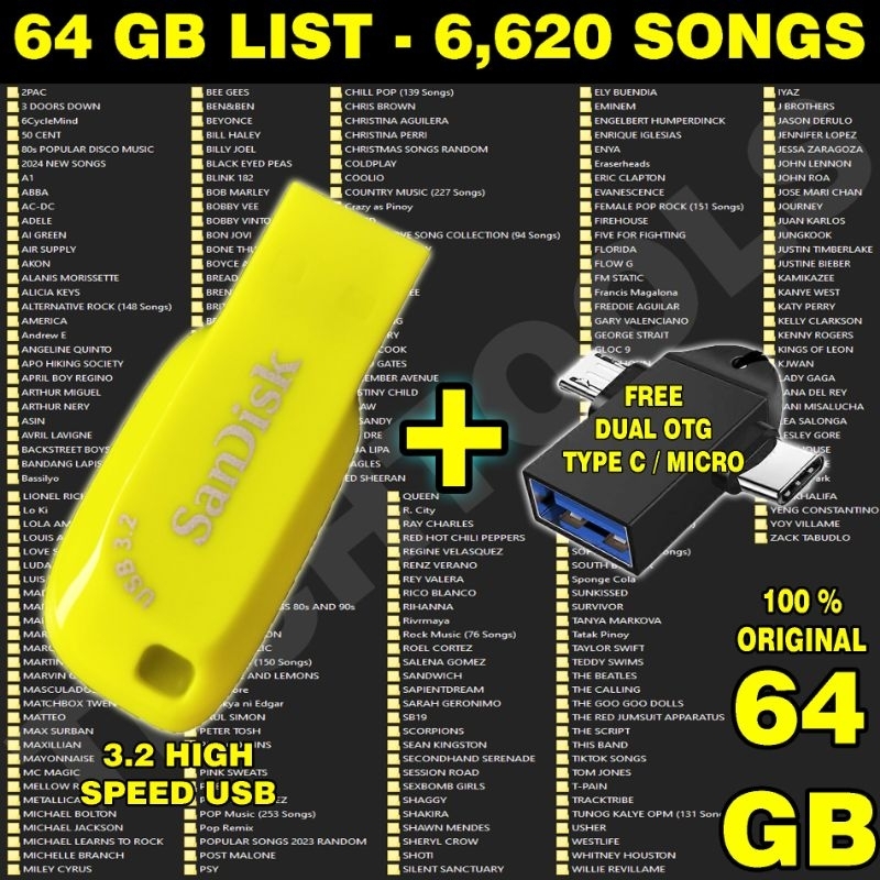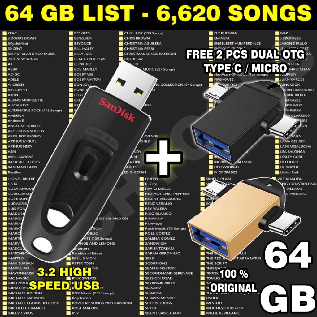 USB FLASHDRIVE WITH SONGS/MUSIC MP3 6620 FILES 320KBPS QUALITY FREE DUAL OTG ADAPTER