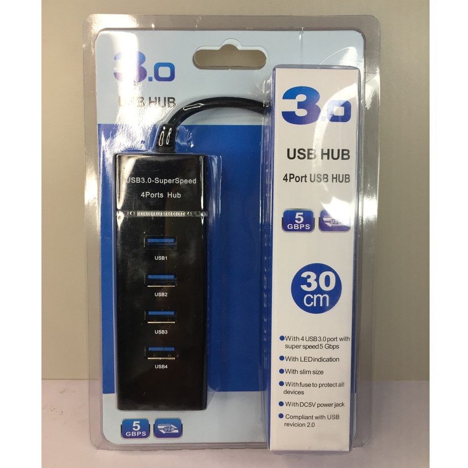 USB HUB 3.0 SUPER SPEED 5-GBPS with LED INDICATION 4 PORTS 30 cm