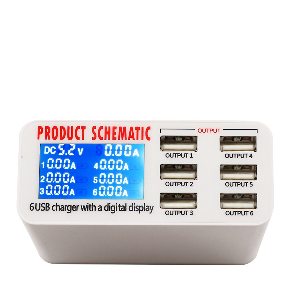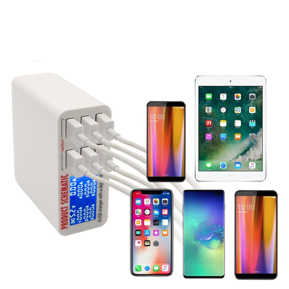 USB Hub Smart Rapid Charge Station Smart Digital Display 6 Port USB Charger Hub for Smartphone