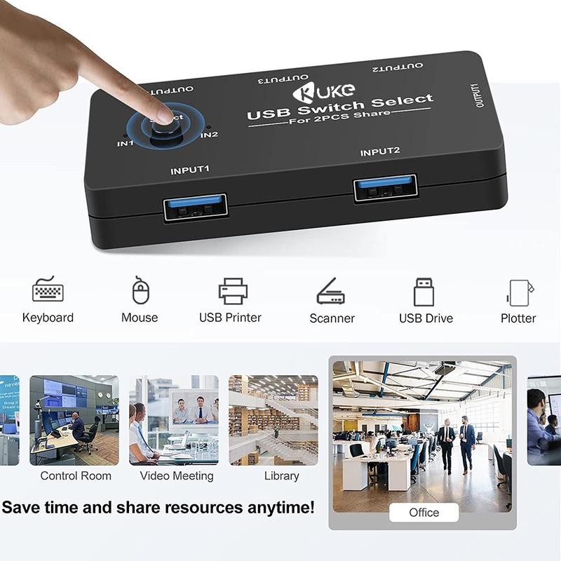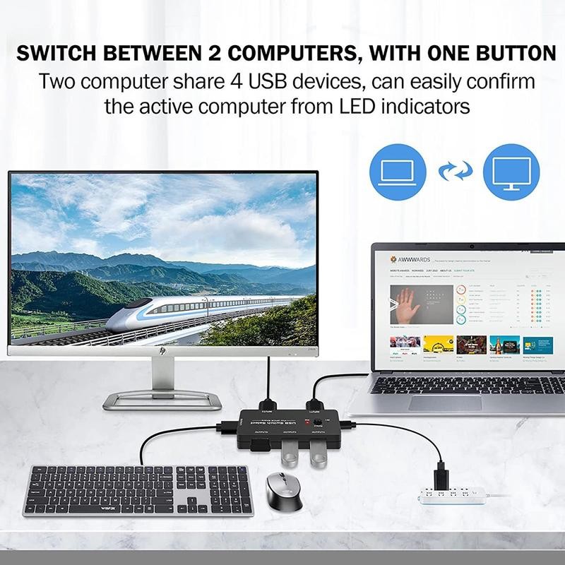 USB KVM Switch USB 2.0 Switcher KVM Switch for Windows 10 PC Keyboard Mouse Printer 2 PCs Sharing 4
