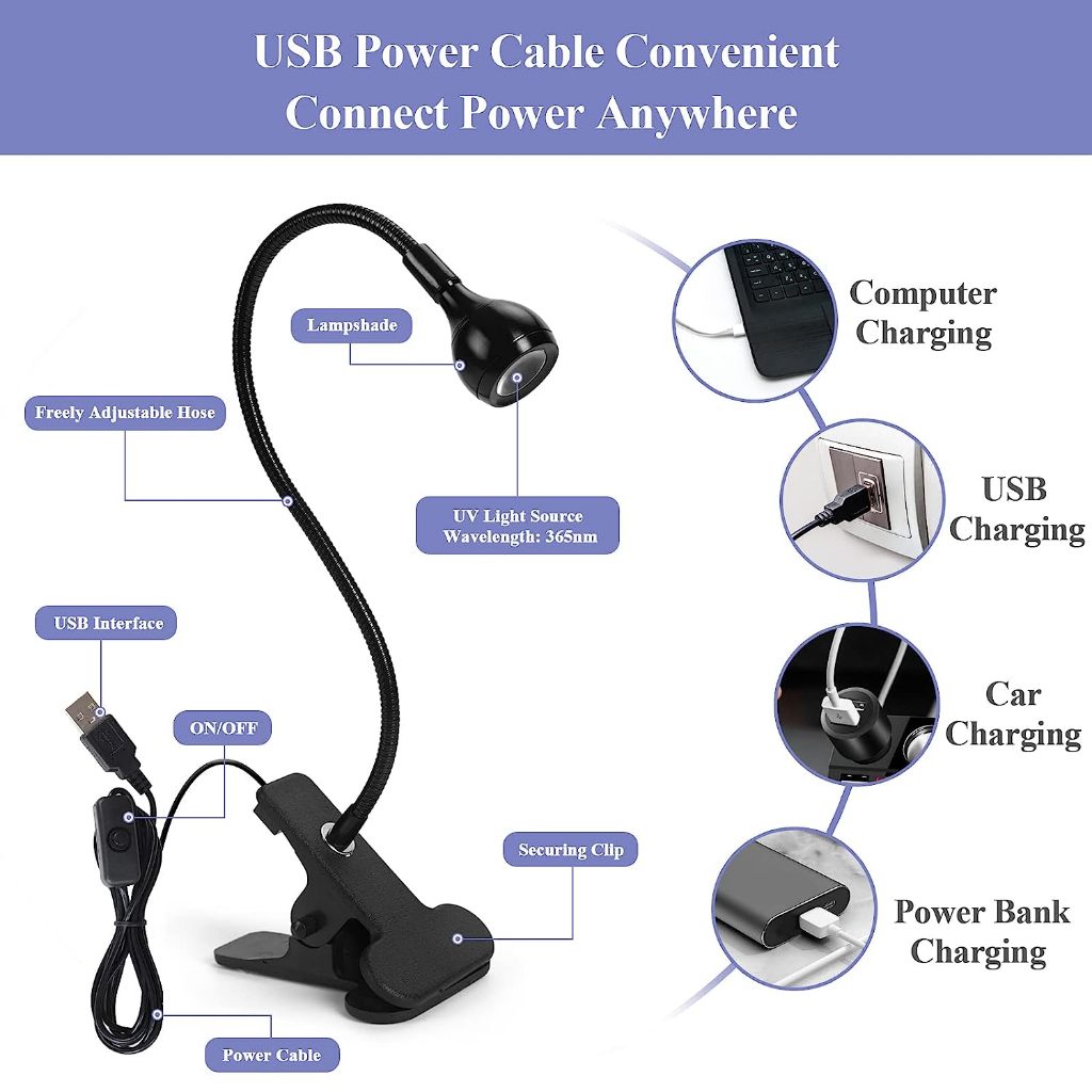 USB LED Clip Lamp Money Detect Light UV Light Nail dryer Violet Light for Pet Urine Stains Detector
