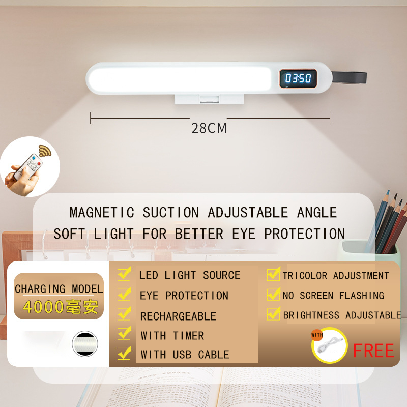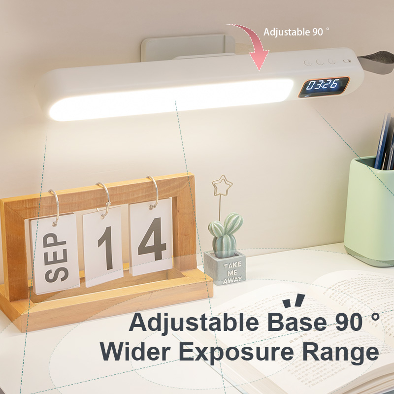 USB LED Clock Table Lamp Rechargeable Portable Computer Monitor Light Reading Office Desk Lights