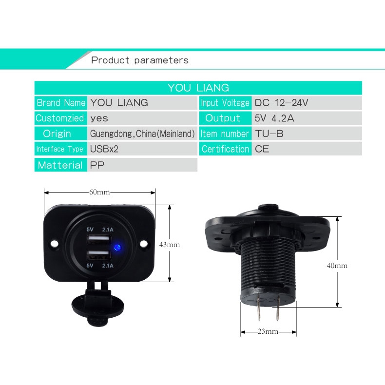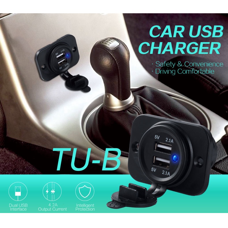 USB Panel Mount Socket 12V USB Charger Waterproof 2 Port USB Car Charger Adapter Mobile Phone QC3.0 Fast Car Charger Socket