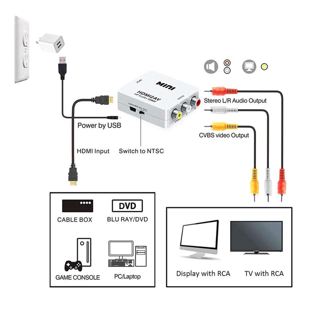 USB Port HDMI TO AV (RCA) Converter AV/CVBS Adapter HD 1080P Mini HDMI2AV Video Converter Scaler Adapter